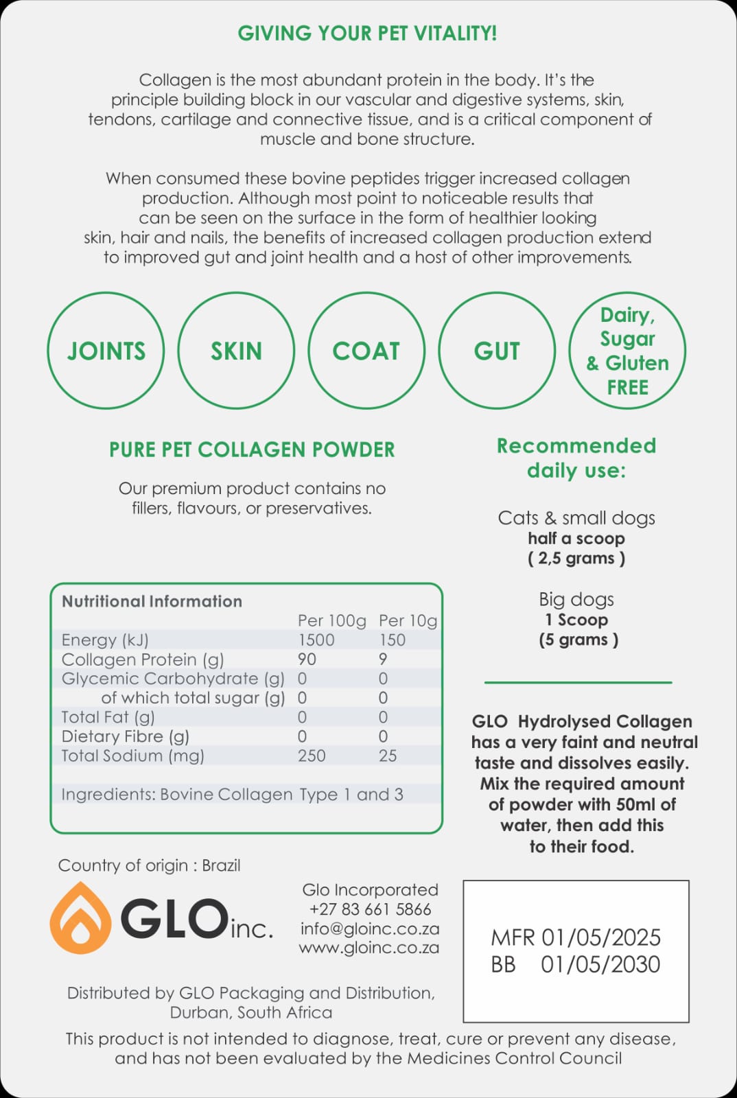 Collagen helps maintain healthy skin and a strong, glossy coat.